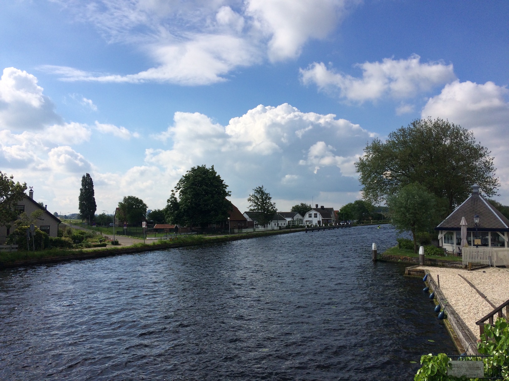 We parked near the end of a no-through lane in one of the handful of spots on the side of the road. To get to the hide we had to walk on a bike path over a drawbridge for bikes, crossing the Vliet canal as a couple of rowing boats passed under us. The wind had picked up causing the water to be a little choppy. To the south clouds were building but the sun was still shining through and the sky to the north was blue. It looked like it would stay dry at least for the morning.