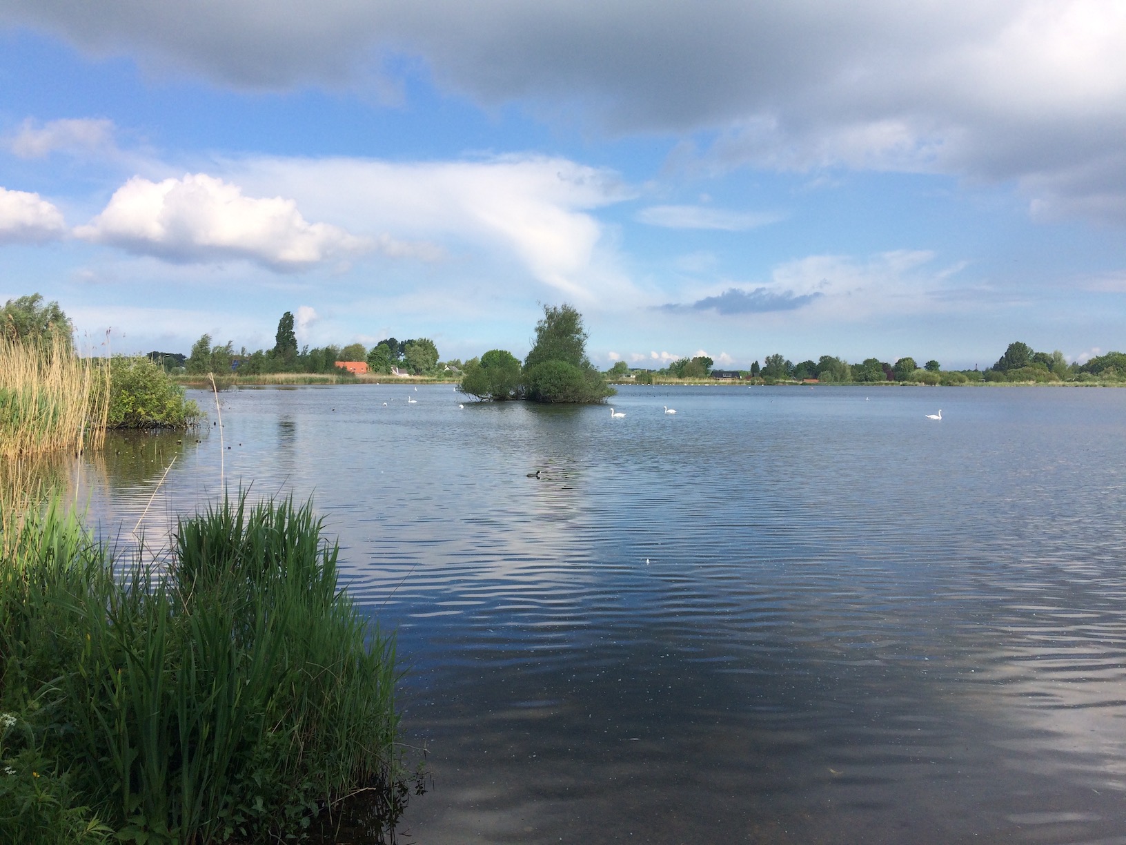 We decided to follow a path along Vlietland first, to see what was there before circling back round to head towards the bird hide at Vogelplas Starrevaart, the lake on our right. We walked along the banks of Vlietland and saw dozens of swans. Dad had read on the Internet before we set off that someone had counted 200 of them (there is a website you can access to see what people have seen on a day to day basis). We could hear a cuckoo in the trees nearby and as we circled round these trees we could almost pinpoint where it was by its sound (but we didn’t see it!).