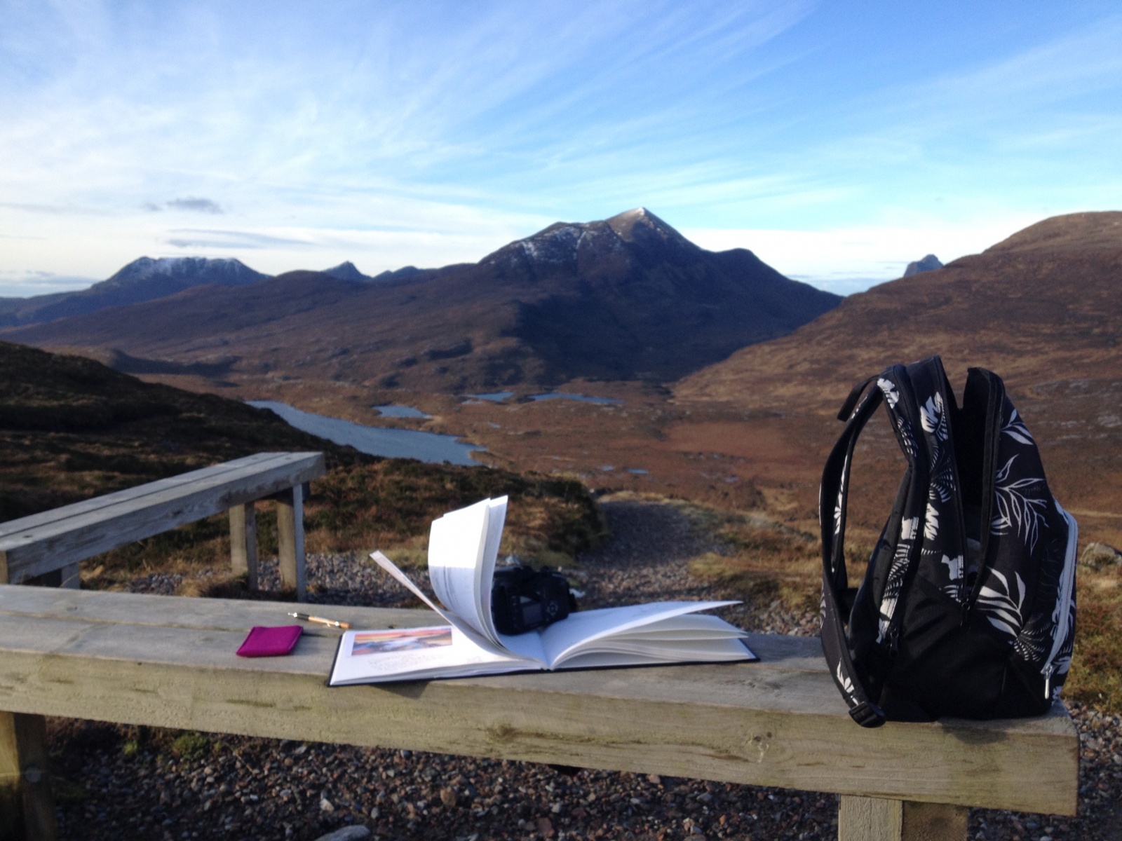 I remember the day when I encountered this deer by the side of the road. I’d got up early to make the most of the dry and sunny weather that morning and hiked up Knockan Crag, which had stunning views across the Highlands and the coast. I sketched the mountains and took lots of photos for my research and drawings later.