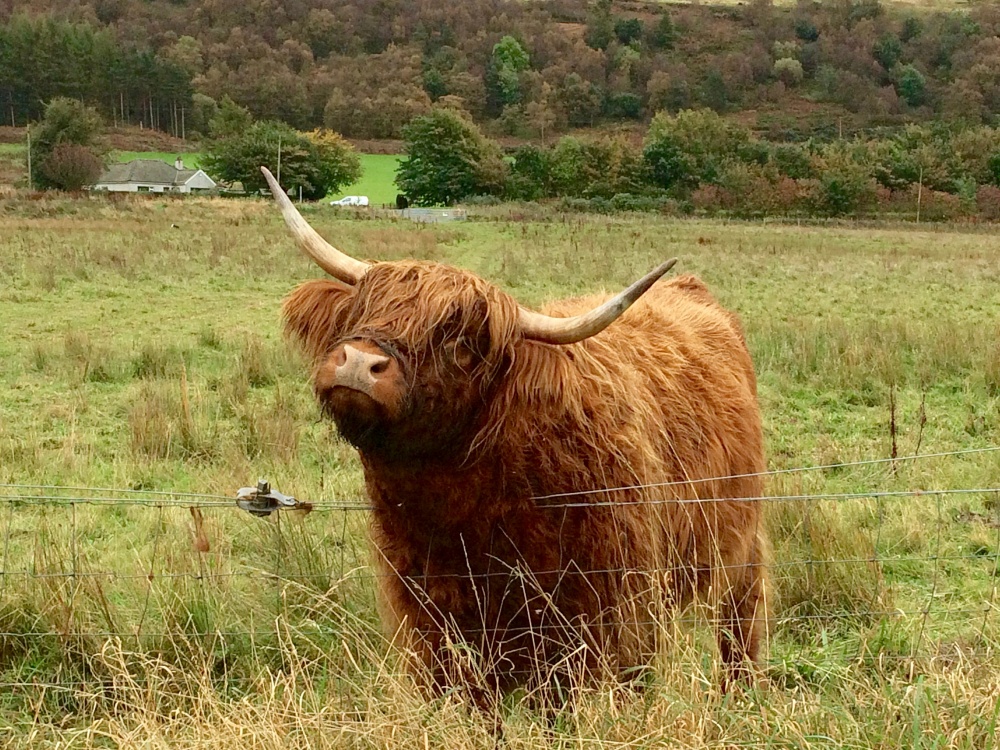 There were two more bird hides that we went into and spent time in. We also encountered a small herd of Highland coos (cows), two of which were using the wired fence as a scratching device. Highly entertaining!
